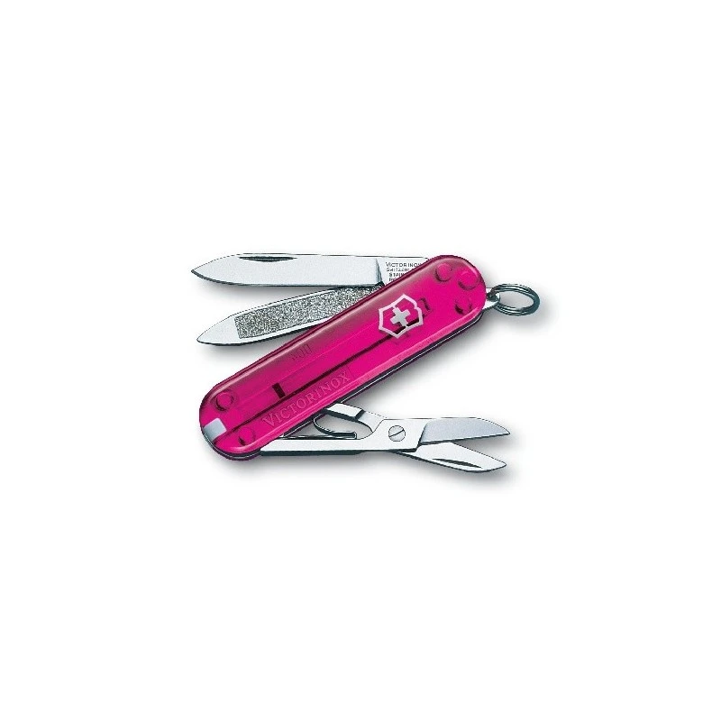 Si ce couteau Victorinox Classic est très polyvalent, il est aussi très compact de part son manche rose translucide de 58mm de longueur pour seulement 21 grammes. Pour seulement quelques grammes supplémentaires dans la poche, vous bénéficierez d’un outil multifonctions redoutable pour vos excursions et mouvements. Mais là où ce canif est très ingénieux, c’est qu’il intègre un petit anneau au bout du manche rose translucide : il ne sert pas à décorer, il permet de facilement monter le couteau suisse à votre trousseau de clefs. Vos clefs de maison et de travail se sentiront tout de suite beaucoup moins seuls et vous aussi puisque vous êtes accompagnés d’un redoutable allié. Son nom ? le Victorinox Classic !