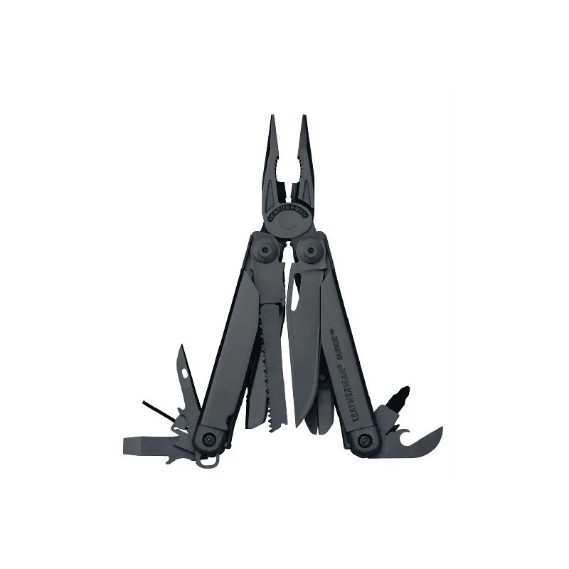 Le Surge Black est totalement identique au Leatherman Surge, à la seule différence qu’il se compose de poignées et outils en acier inoxydable noir. Sinon, ce multifonction possède les mêmes fonctionnalités (21 au total), dont certaines sont essentiellement destinées pour le bricolage comme par exemple la pince multi-usages, le coupe-fil, la scie à bois, la règle graduée, la lime à bois et à métal, les tournevis, la paire de ciseaux sans oublier les deux lames (lisse et crantée en acier HC420).